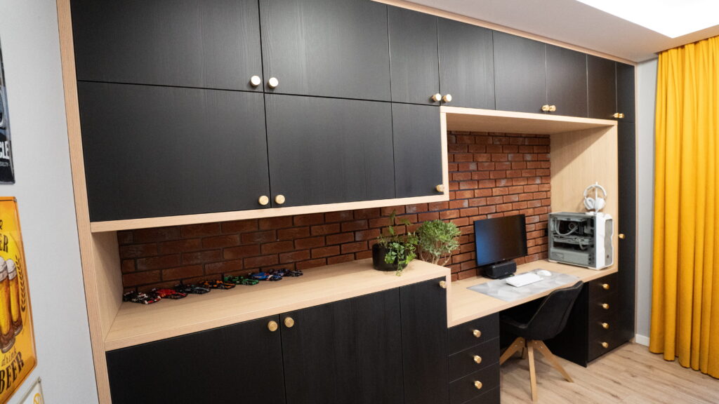 Výsledkom je luxusná, nadčasová chlapčenská izba, ktorá spája estetiku s funkčnosťou, moderný dizajn s premyslenými detailmi a poskytuje dieťaťu pohodlný a bezpečný priestor na učenie i hru.